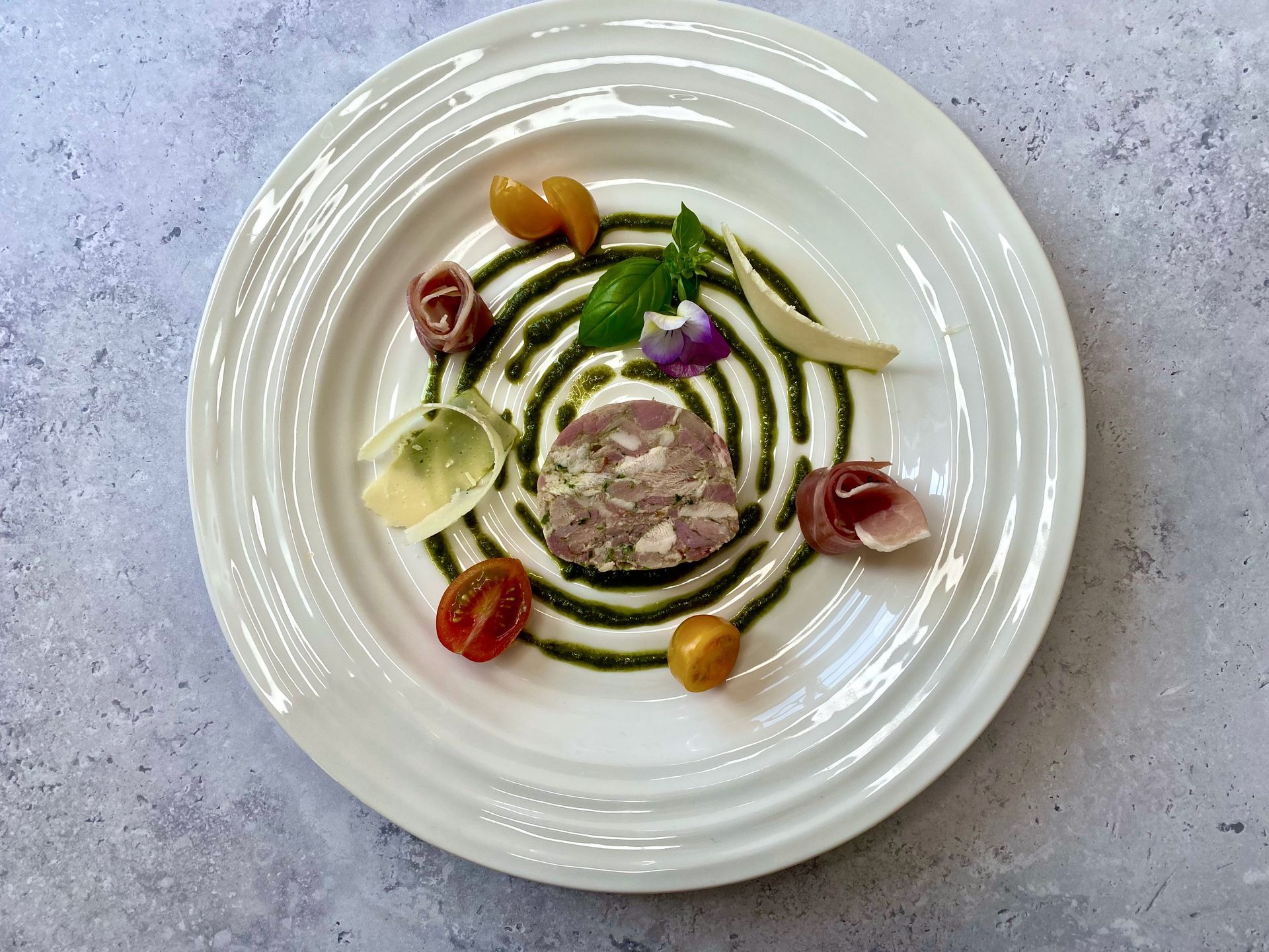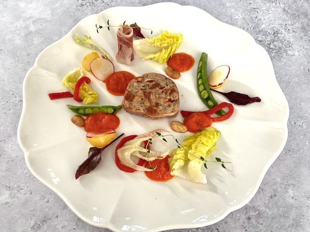 Chicken terrine, spiced with smoked paprika & Chorizo.